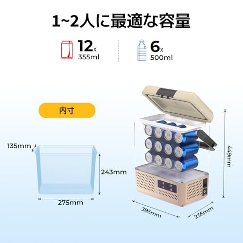 【抜群の携帯性&省スペース設計】 この車載冷蔵庫は、幅約39.5cm×奥行約23.6cm×高さ約44.9cm、重量わずか8.8kgという驚きの軽さとコンパクトさを兼ね備えています。便利なハンドル付きで、片手でラクラク持ち運びが可能!車内での設置場所にも困らず、センターコンソールや助手席、後部座席の間など、限られたスペースにもスムーズに収まり、車内空間を有効活用できます。さらに、冷蔵庫のトップ部分には防滑加工が施されたカップホルダーを搭載。飲み物を置いても滑りにくく、安定感抜群です。キャンプやピクニックといったアウトドアシーンでも安心して使用できる、空間活用と機能性を両立します。