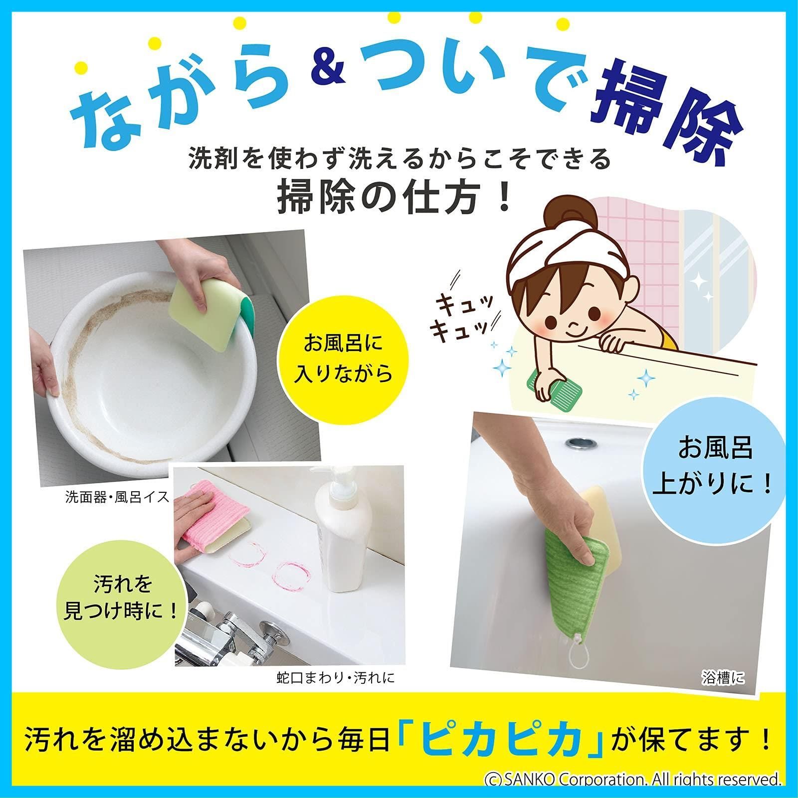【洗剤不要】洗剤を使用せず汚れが落とせるので、手荒れ、節水対策、お子様のお手伝い、ながら掃除(お風呂に入りながら)ができます。使用する場合でも少量で汚れが落とせます。