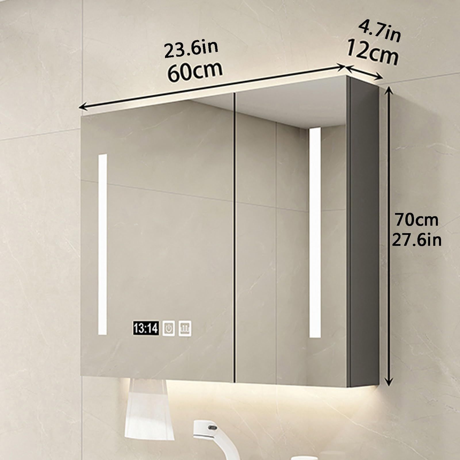 Gray Color 木製LED照明付き Size ミラーキャビネットミラーキャビネット ミラーキャビネット曇り止め浴室の壁のキャビネット洗面所 曇り止め洗面化粧台 ミラー 浴室 70 12 cm 27 6 4 7 in 鏡スマート調光