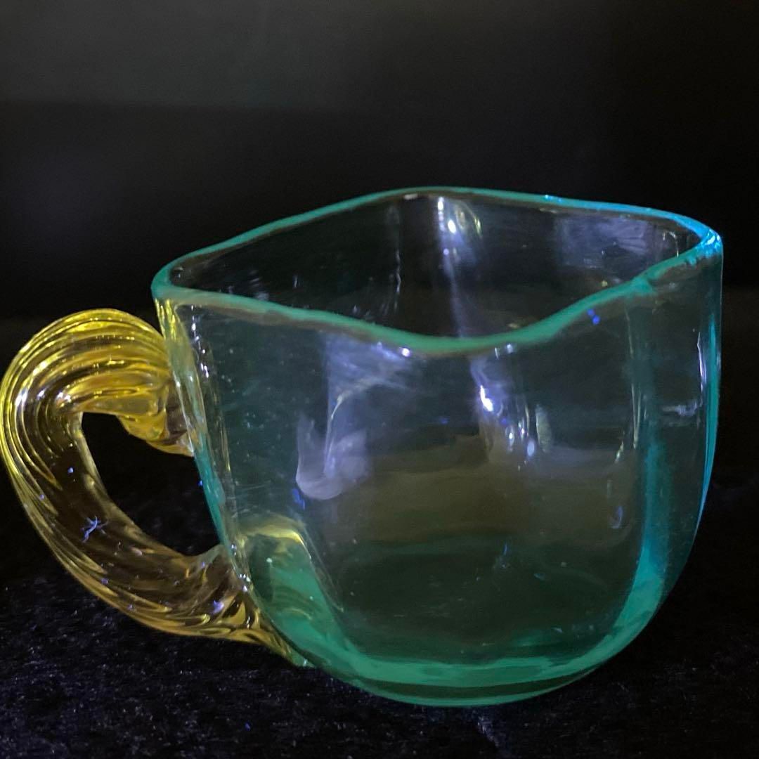 明治期 ウランガラス 手付 杯 幅4 6㎝ 東な6 1118 2 F