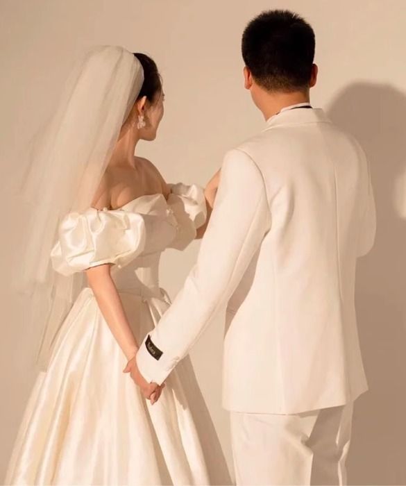 胸元パール ウェディングドレス プリンセス パフ袖 可愛い 韓国