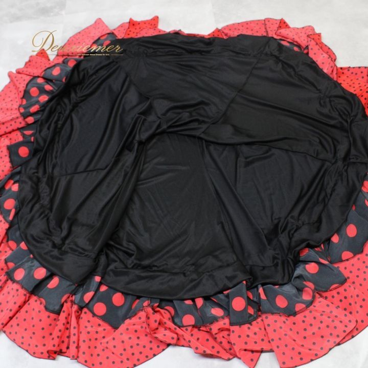 フラメンコ 衣装 ワンピース ドレス 黒 赤 ドット 水玉 ボランテ フリル fantastica ブラック系 レッド系 ダンス 舞台 パーティ 発表会 レッスン 伸縮 スカート フリルデザイン ゴージャス 伸びる素材 快適 着やすい コスチューム レディース