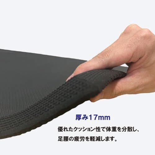 厚さ17mmの優れたクッション性が体重負担を分散し、足腰の疲労を軽減します。