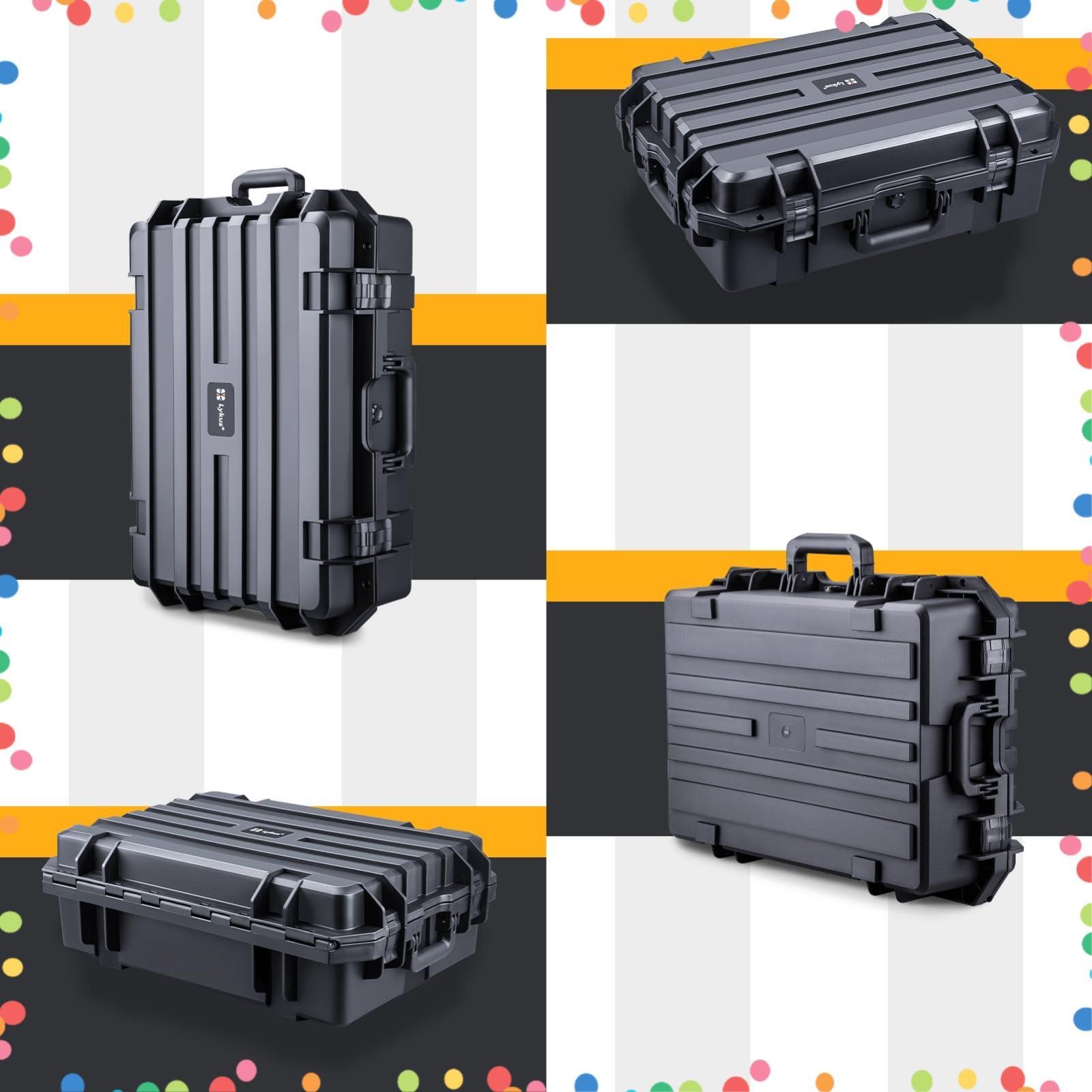 Lykus HC-6020 防水ハードケース 格子状カットスポンジが内蔵 内寸:59.3x42.3x19 cm カメラ、プロジェクター、ドローン、ラップトップなどに適用