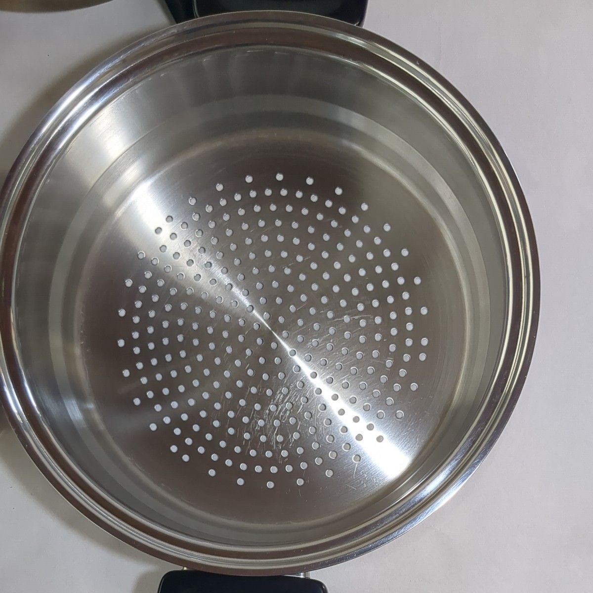 ビタクラフトの両手鍋(No.5204)と蒸し器(No.3347)のセットです。両手鍋単体でも使用できます。ヘルシーな蒸し料理を時短で調理できます。