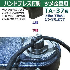 ハンドプレス 打駒 ツメ付き金具 TA 37 幅3 5 mm ツメ金具TA 37用 上駒1下駒1 2パーツ 入 鉄製 焼き加工 丸く仕上がる 巻き込み式 きれいな仕上がり 髪ゴム 紐 まとめる しっかり留まる ウチコマ上駒ネジ規格 JIS規