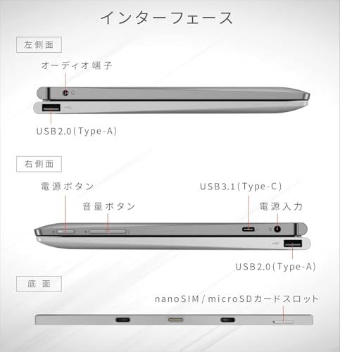 【拡張性もしっかり】USB Type-C(データ/画面出力 )、キーボード側にUSB 2.02、microSDカードで容量拡張可能。※本モデルはSIM/WWANに対応しないWi-Fi専用です。