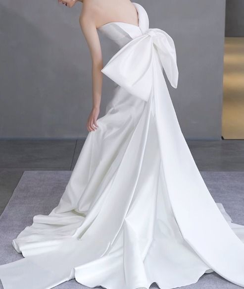 バックリボン ウェディングドレス チューブトップ 上品 韓国