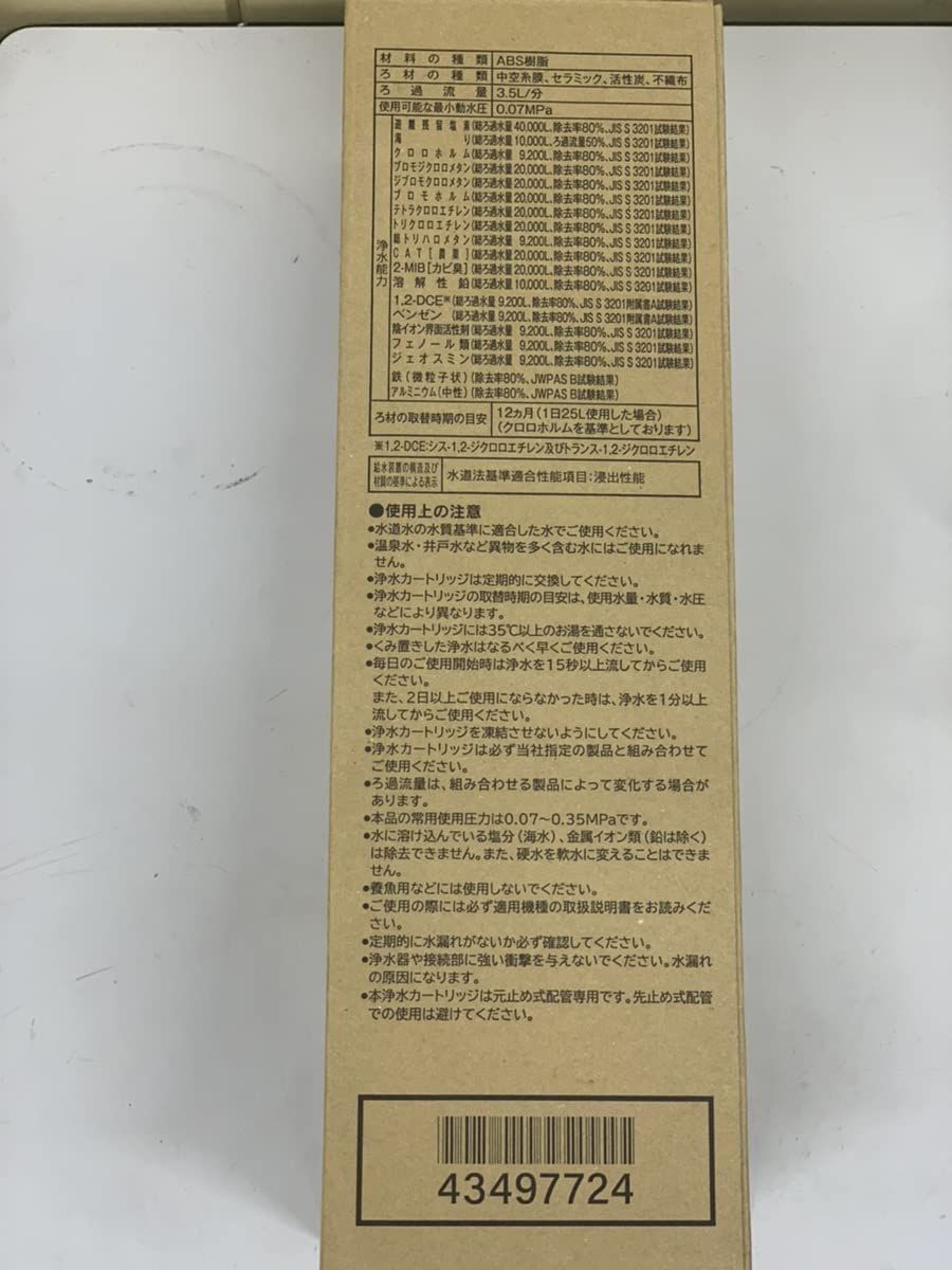 カートリッジの寿命:約1年(使用水量25L/日) 溶解性鉛・総トリハロメタン・鉄(微粒子状)・アルミニウム除去タイプ 【浄水器・アルカリ整水器用】(UZC2000T後継品)