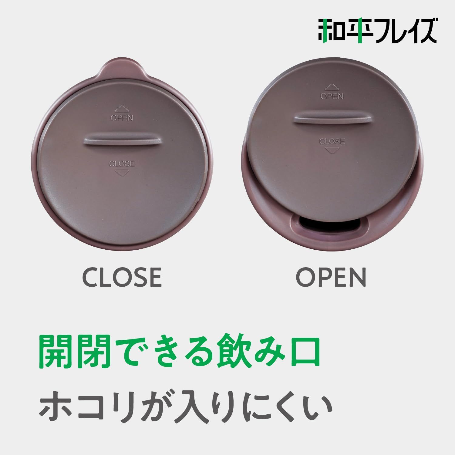 内ビン:ステンレス鋼、胴部:ステンレス鋼、スライド蓋:PBT樹脂、飲み口本体:ポリプロピレン、パッキン:シリコーンゴム