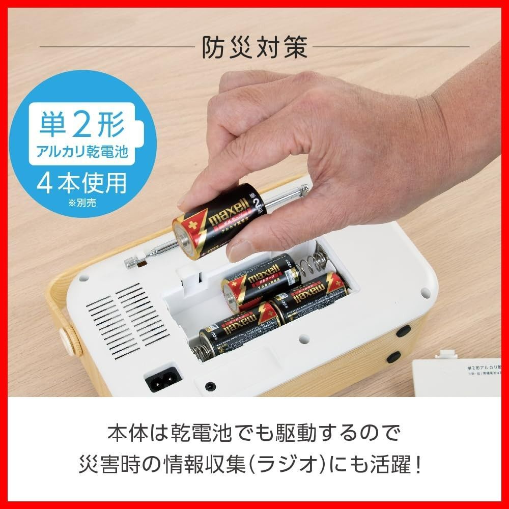 受信周波数:AM:522~1629KHz FM:76~108MHz スピーカーユニット:直径76mm コーン型スピーカー