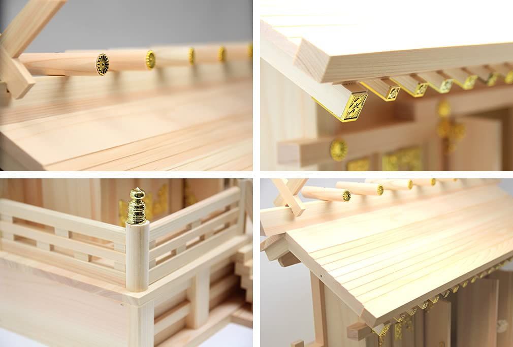 【ご家庭はもちろん事務所などでもお使いいただける納得の質感】存在感たっぷりの三社タイプの神棚です。屋根が通しになっており、三社ながらもスッキリとした飽きの来ないデザインも魅力です。御札を三枚安置することができるので、事務所や会社などでも安心してお使いいただけます。どなたにもオススメの逸品です。