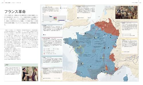 西欧はもちろん、アジア、アフリカ、アメリカ、オセアニアなどの文化や動向までを押さえた、世界史上の重要で興味深い約130のテーマを、グラフィカルな地図をメインに用いて時系列で配置しているため、全世界の歴史の流れと文化の多様性が自然に統合されながら理解できるよう工夫されている。