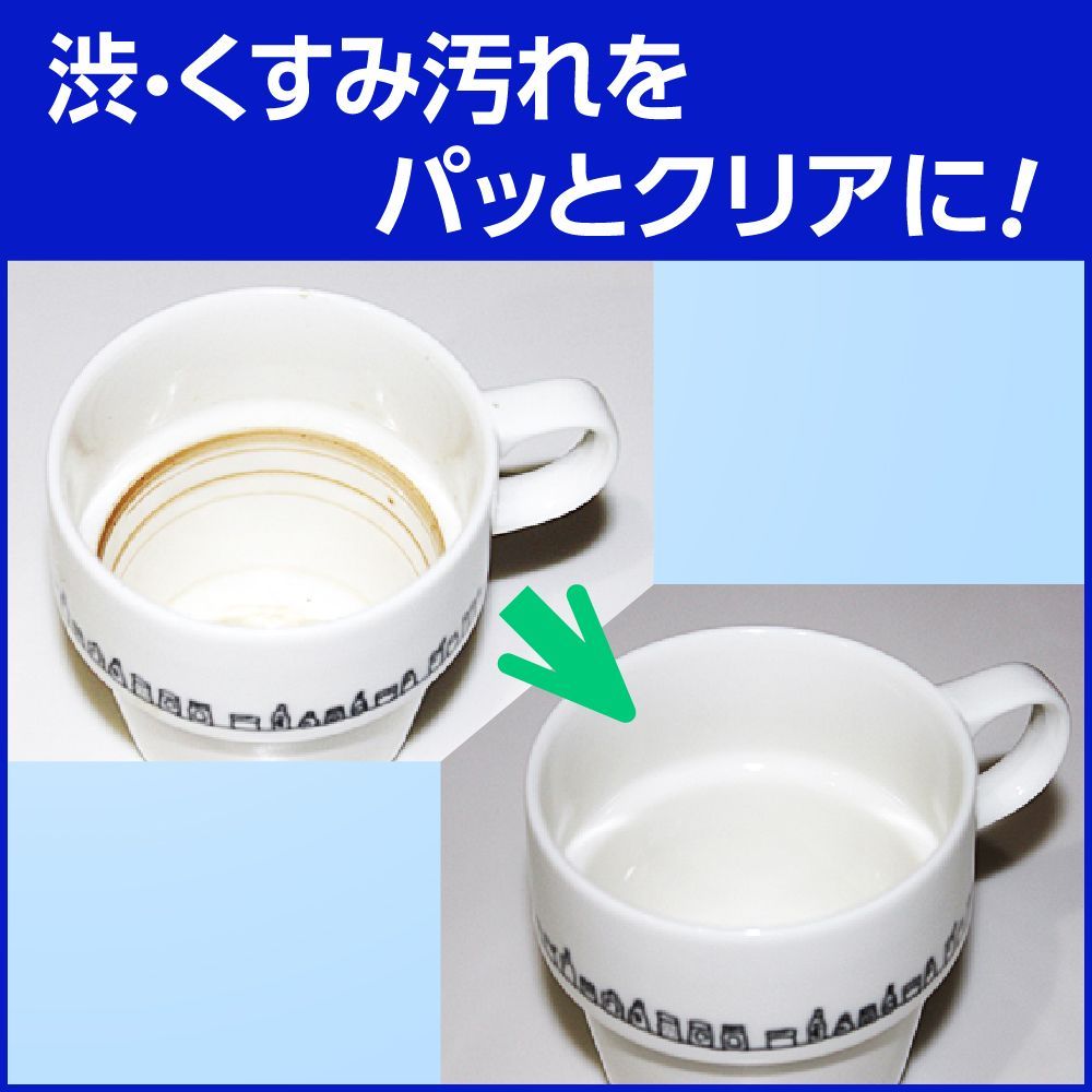 クエン酸が着色汚れを分解!茶渋・コーヒー渋までパッ!とクリアに。