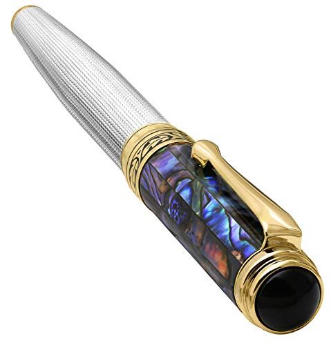 Xezo Maestro ソリッド 925 スターリングシルバー ブルー パウア 貝殻 すべて手作り シリアル ファイン万年筆 18 K金メッキ 2つと同じものはありません