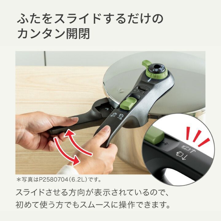 初めて圧力鍋を使う方でもふたの開閉がスムーズにできます。