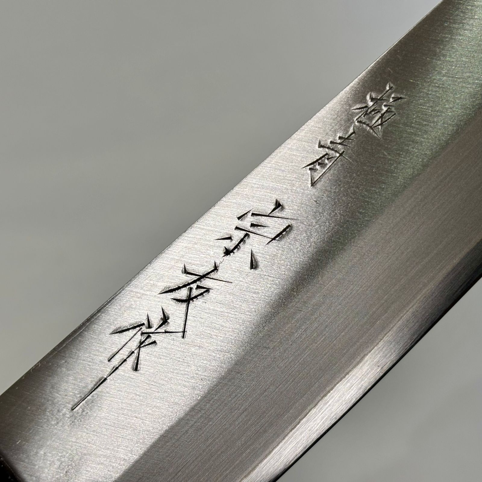 この包丁は、高炭素鋼「青紙スーパー」を芯材として使用し、SUS412ステンレス鋼で覆われています。