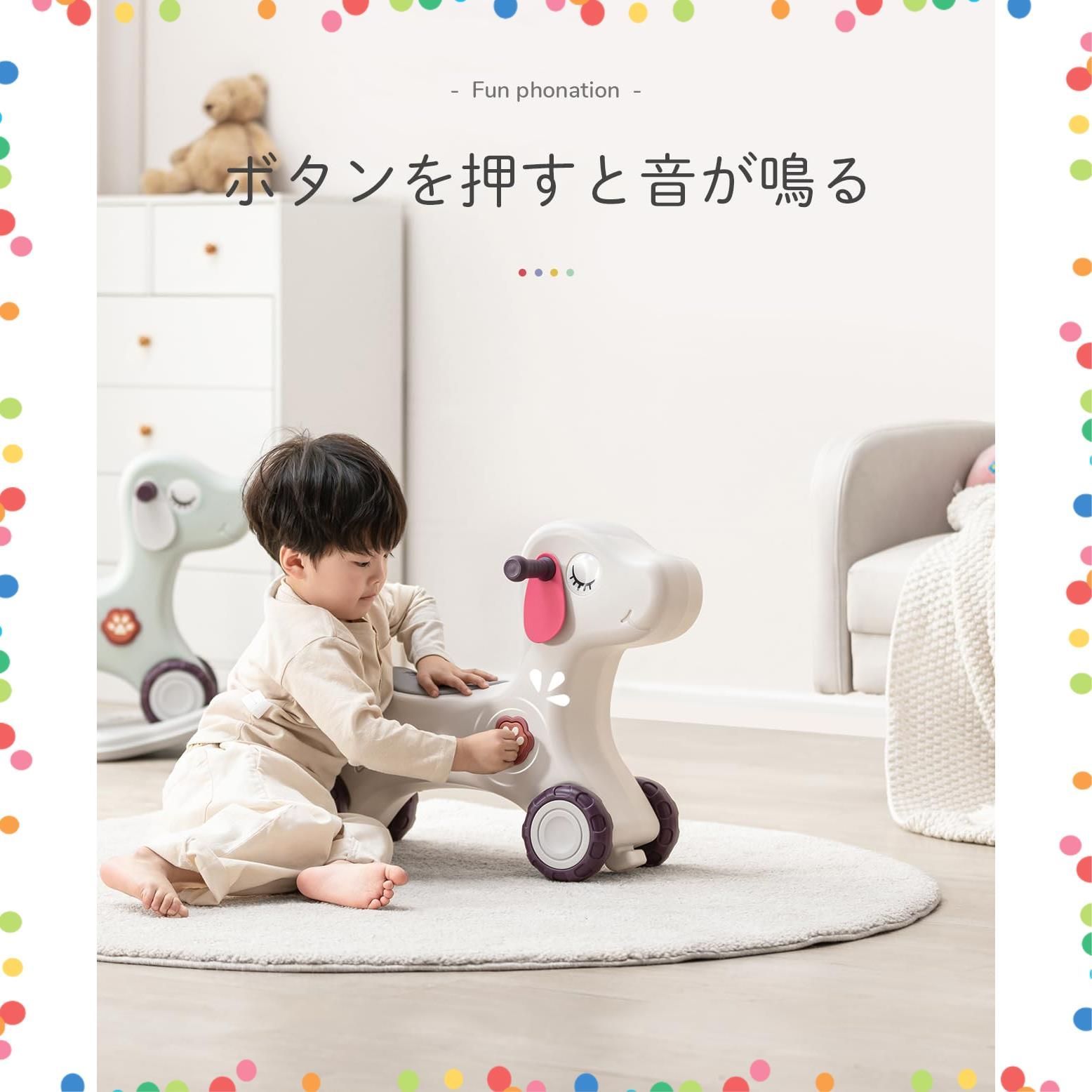 Gorocking 木馬 1-5歳子ども 乗り物おもちゃ 足蹴り車兼用 キーワード:木馬 四輪車 乗り物おもちゃ 乗り物 子供 三輪車
