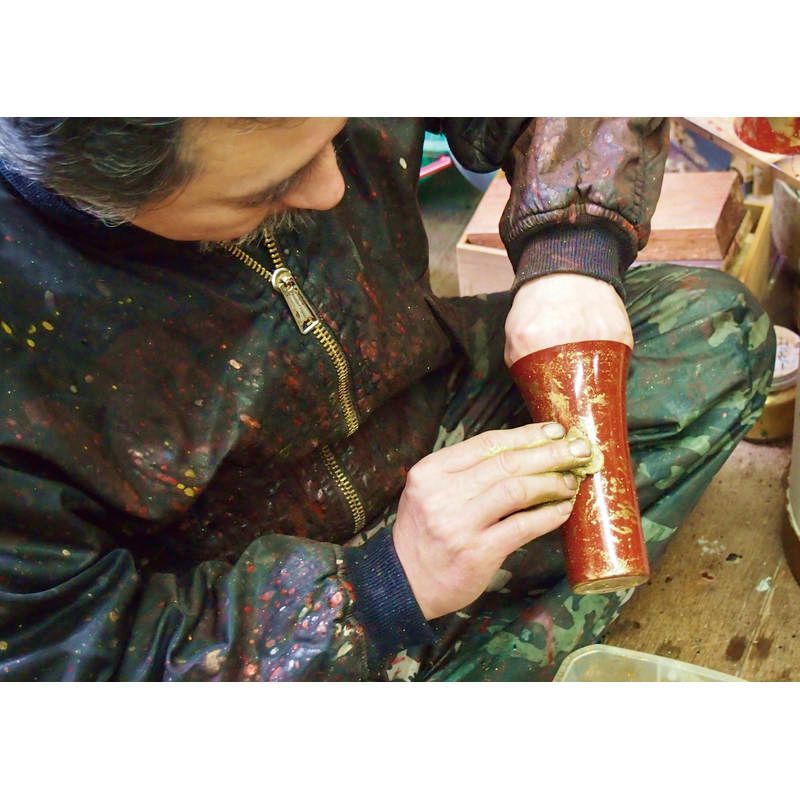 内側は螺旋状に磨き上げビールを注ぐとクリーミーに泡立ちます。外側は金沢箔で加飾し、表面に拭き漆仕上げを行っており、金沢箔の優美さを引き出した、高級感漂う仕上がり。
