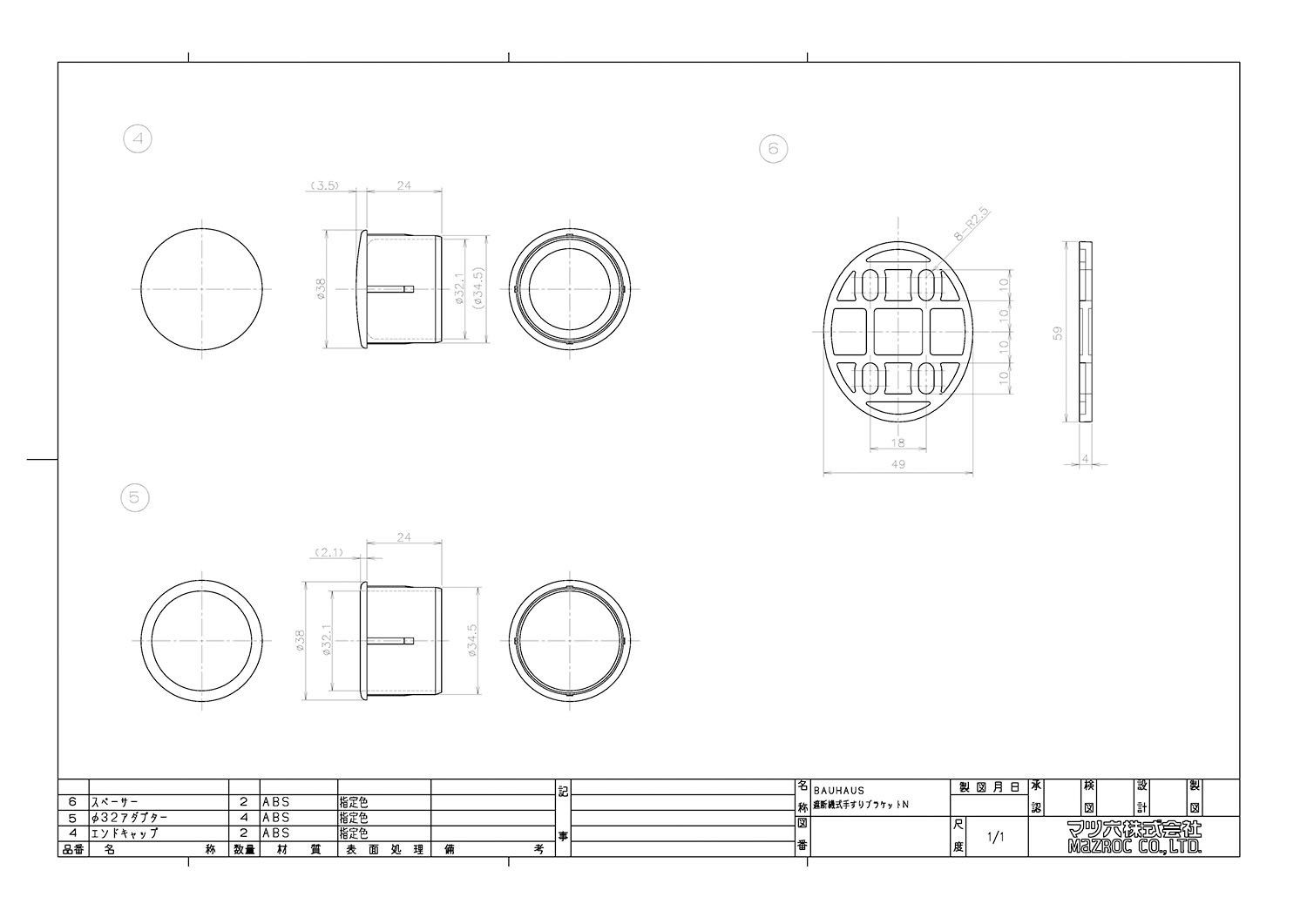 マツ六 Mazroc 手すり部材 BAUHAUS 遮断機式手すりブラケットN 左右兼用 BF 21 G ゴールド