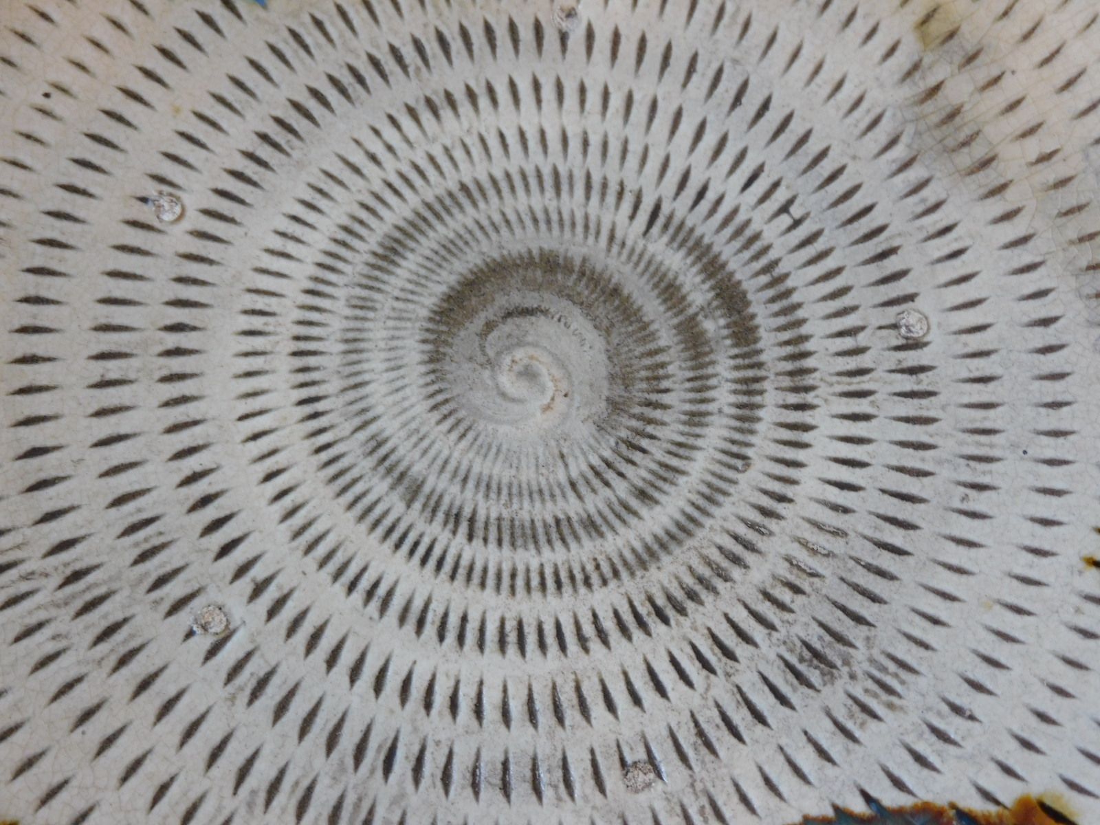 小鹿田焼 二彩 とび鉋 大皿 直径285 mm HK-a-05886 | 古道具 古陶磁 李朝 白丹波 デルフト 粉引 白磁 ボウル