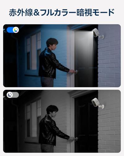【双方向通話&家族共有機能】双方向通話機能により、来訪者とその場で会話可能。スマホ対応の無料アプリで通知を受け取り、録画映像は家族共有機能で複数人が同時に確認可能です。ワイヤレス防犯カメラならではの使いやすさを実現します。