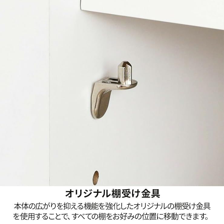 鍵付き扉内には3cmピッチで高さ調整ができる可動棚。縦置きA4ファイルなどの保管にも対応します。