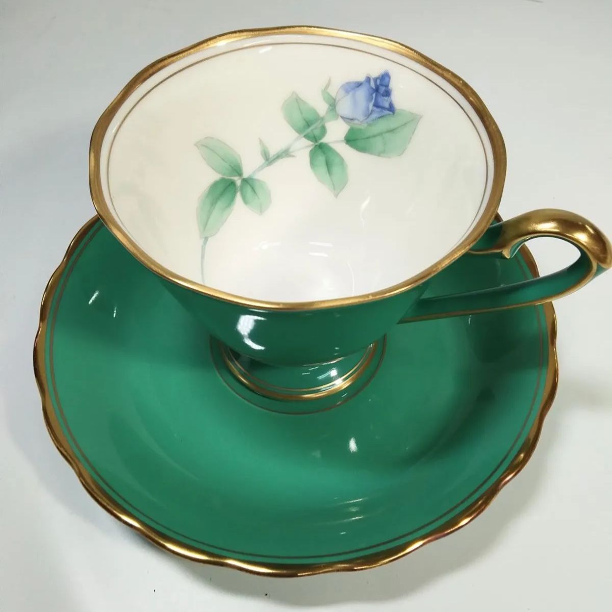 グリーンカップの内側に色違いのバラ模様です。専用箱に入れたままで未使用の長期保管品です。