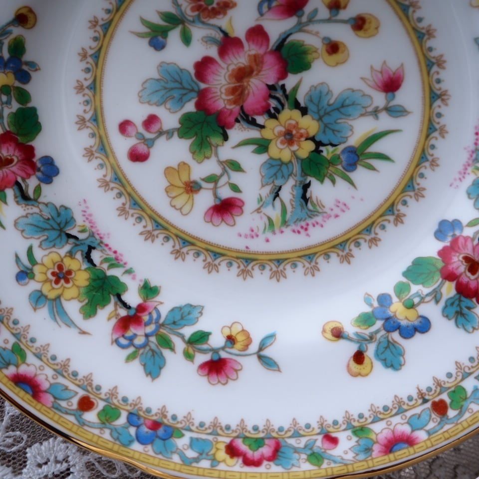 英国の名窯コールポートによる「ミングローズ」は、色とりどりの花々と繊細な金彩が特徴の、長年愛され続けてきた人気シリーズです。