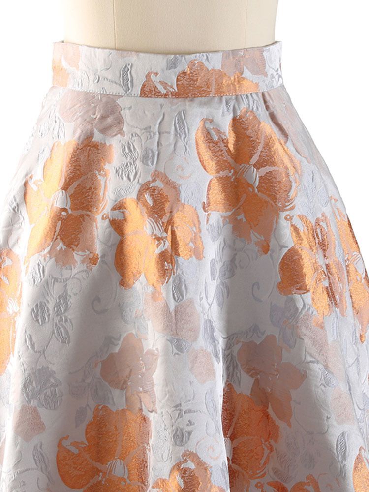 素敵 ジャガード 花柄 ミモレ丈 フ スカート