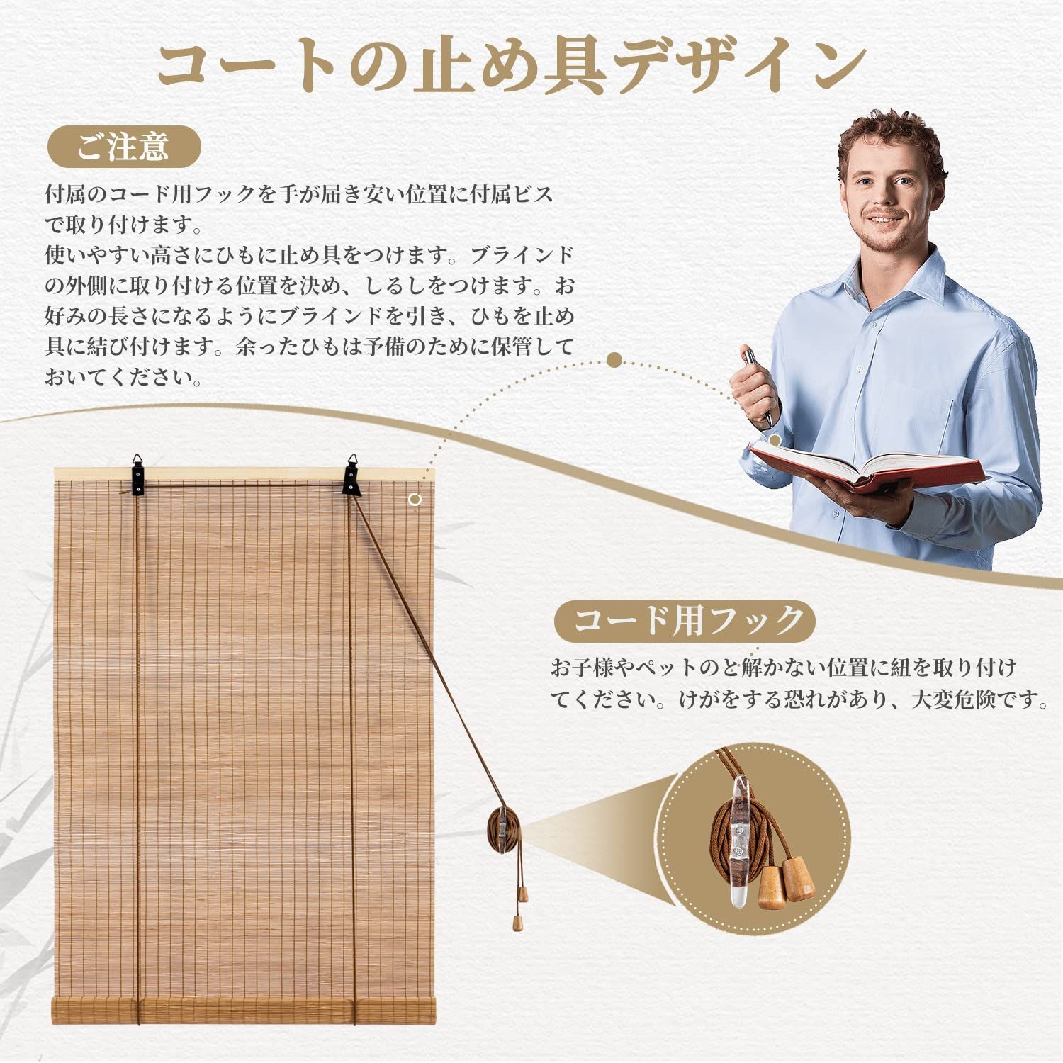 数量 風通し 日よけ防止 和風 日除け 遮熱 巻き上げ機能 竹ブライド 屋内 和室 簾 竹ロールスクリーン 幅88 cm 丈180 カーキ 2本セット コード用フック付き 竹すだれ Art Bamboo Yitian