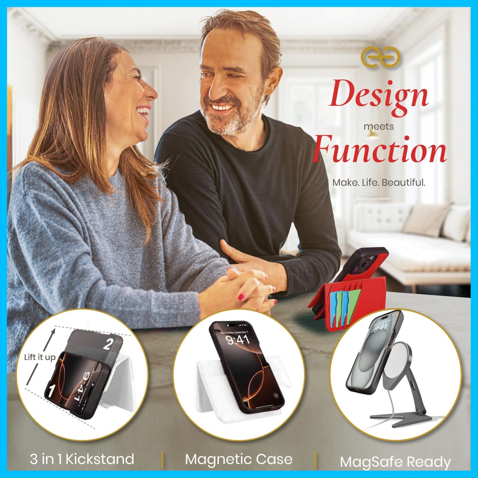 多機能スマホウォレット - 4つのカードホルダースロットにRFID保護機能を搭載、3~6枚のクレジットカードと5~10枚の紙幣を快適に収納できます。開きやすいクラスプ - ウォレットを簡単に開閉できます。スマートな、水平方向と垂直方向の視聴を可能にするキックスタンド、完全に調整可能なので、どこでもハンズフリーでビデオ通話、読書、映画鑑賞ができます。