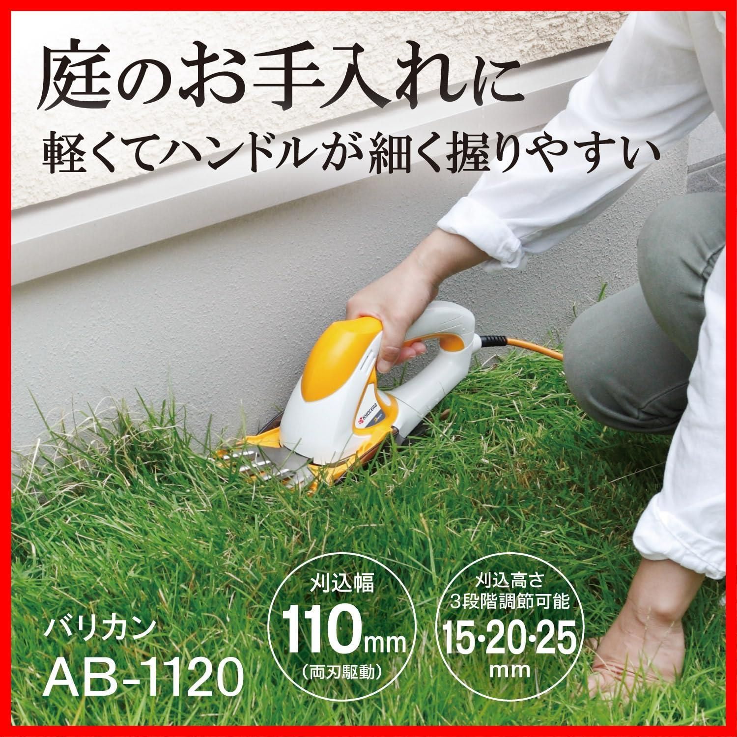 京セラ(Kyocera) 旧リョービ バリカン AB-1120 刈込幅110mm キワ刈りガイド付 693950A 【キワ刈りガイドで壁や刃を傷つけないでキワの芝をカット】 刈込幅110mm 両刃駆動 刈込高さ3段階ワンタッチ調節 切味長持ちニッケルコーティングブレード 日本製ブレード
