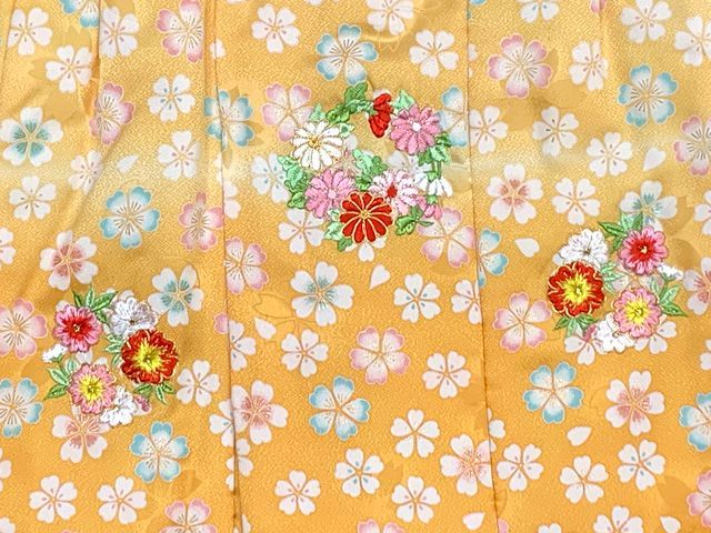 七五三 三歳 女の子 被布セット 正絹被布コート 草履 巾着 足袋 4点コーデセット クリームx山吹ぼかし 桜 IHF 867 4 set 01