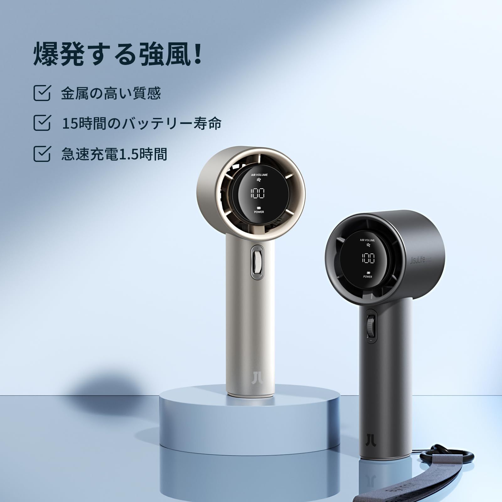 手持ち 携帯扇風機 1 100段階風量調節 最大15時間動作 強風 5000 mAh大容量バッテリー LEDデジタル表示 USB充電式 ポータブル小型 卓上扇風機 金属ボディ軽量 小型 瞬間冷却 ハンディファン 熱中症対策 JISULIFE 旅行 キャンプ アウ