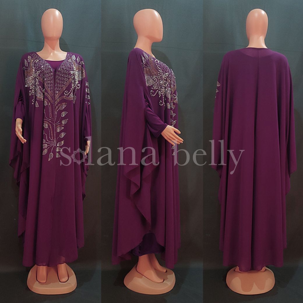 ベリーダンス 前開き ガラベーヤ アバヤ パープル