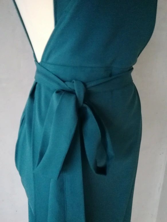 4 L 6 梨地ストレッチ ピーコックグリーン 茶道お稽古用エプロンウエストリボン127100 72 2