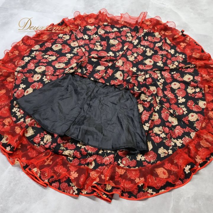 #フラメンコ #衣装 #ファルダ #スカート #プリマブティック #花柄 #ブラックレッド #ダンス衣装 #パフォーマンス #フラメンコダンス #コスチューム #ファッション #ステージ衣装 #ウエスト伸縮性 #華やか #ポリエステル #ダンス衣装通販 #セクシースカート #形式 #ENUTSU