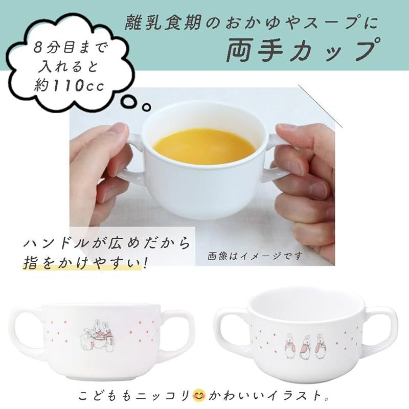 [本体サイズ] セット:ランチプレート/約21.6×2.7cm、ボール/約11×4.7cm・210ml、両手カップ/約8.4×5.4cm・180ml 、小皿/約9.8×2.7cm・110ml、スプーン/約13.1cm、フォーク/約13.1cm(スプーン、フォークは18-8ステンレス製)