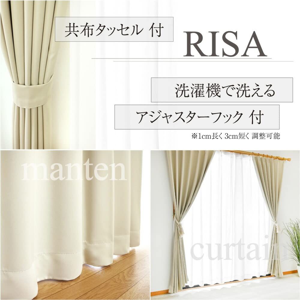 満天カーテン 遮光 1級 昼夜 透けない 高断熱 ミラー レース カーテンセット 北欧遮光カーテン オーダー 形状記憶 洗濯機で丸洗いOK リサ アイボリー 幅150 cm 丈190 レース丈は 2 組