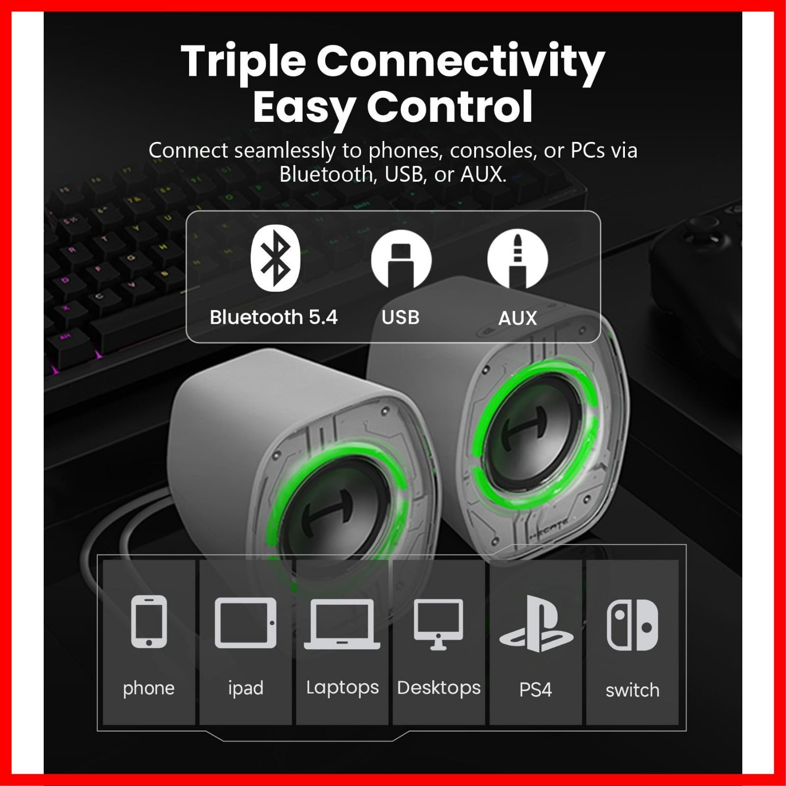 2 0 ch ゲーミングスピーカー PC スピーカー RGB 音質高 PS 5 小型 Pro 4 Switch Switch等ゲーム機対応 卓上 Bluetooth USB 3 mm II AUX ワイヤレス 有線接続両対応 G 1000