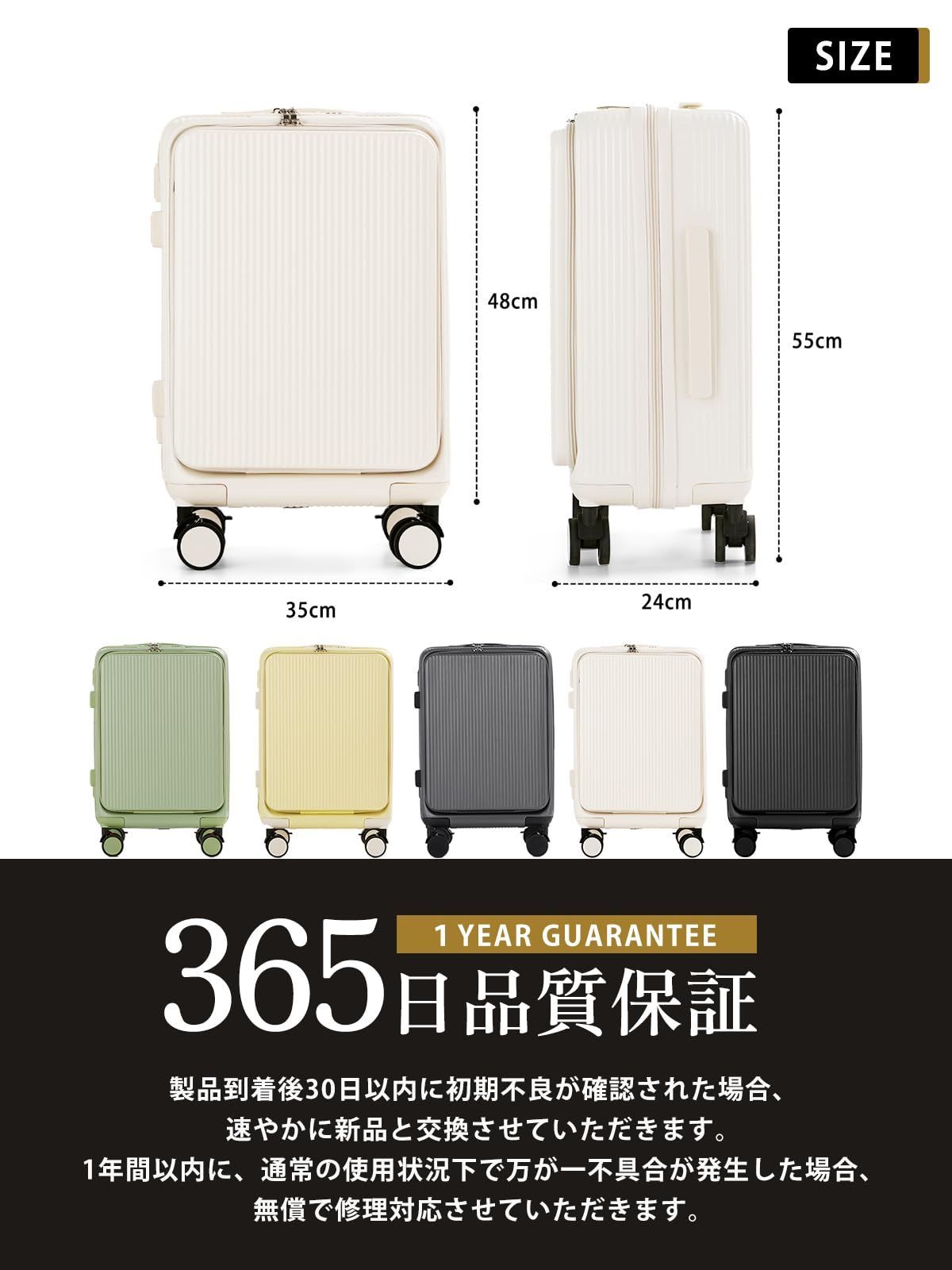 【スーツケース 機内持ち込み・1年間無料】トランクはABS樹脂とPC製での混合素材を採用します。高弾性で、変形しにくい、防水性、耐衝撃性を備えています。通常使用で1年以内に不具合が発生した場合、無料で修理また交換させていただきます。万が一、初期不良があった場合は迅速に新品交換させていただきます。