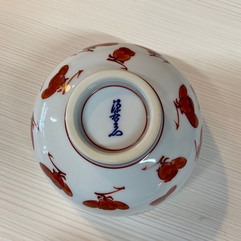源右衛門 染付/赤絵梅花 飯碗 ペアセット。