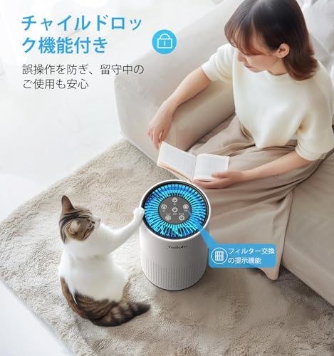 【節電対策・多機能搭載・ニオイ対策】ポータブル空気清浄機は高性能で浄化する同時に、節電も工夫しています。1日(12時間)あたり僅か2.08円の超省エネの姿で働いており、また、2h4h8hの3段階タイマーと3段階風速調節機能が付き、遠慮なく快適にエンジョイできます。チャイルドロックも付き、子どもやペットの誤操作を防ぎ、
