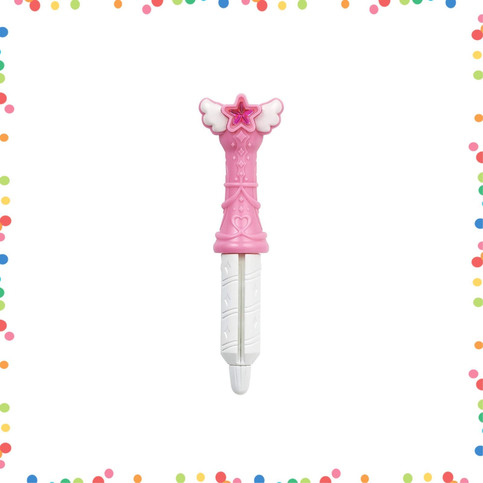 変身スターカラーペンをセットしてペンでタッチすると、光とともに番組での変身シーンと同様の歌と音楽がフルで流れ、ミュージカル変身のなりきりあそびができる!