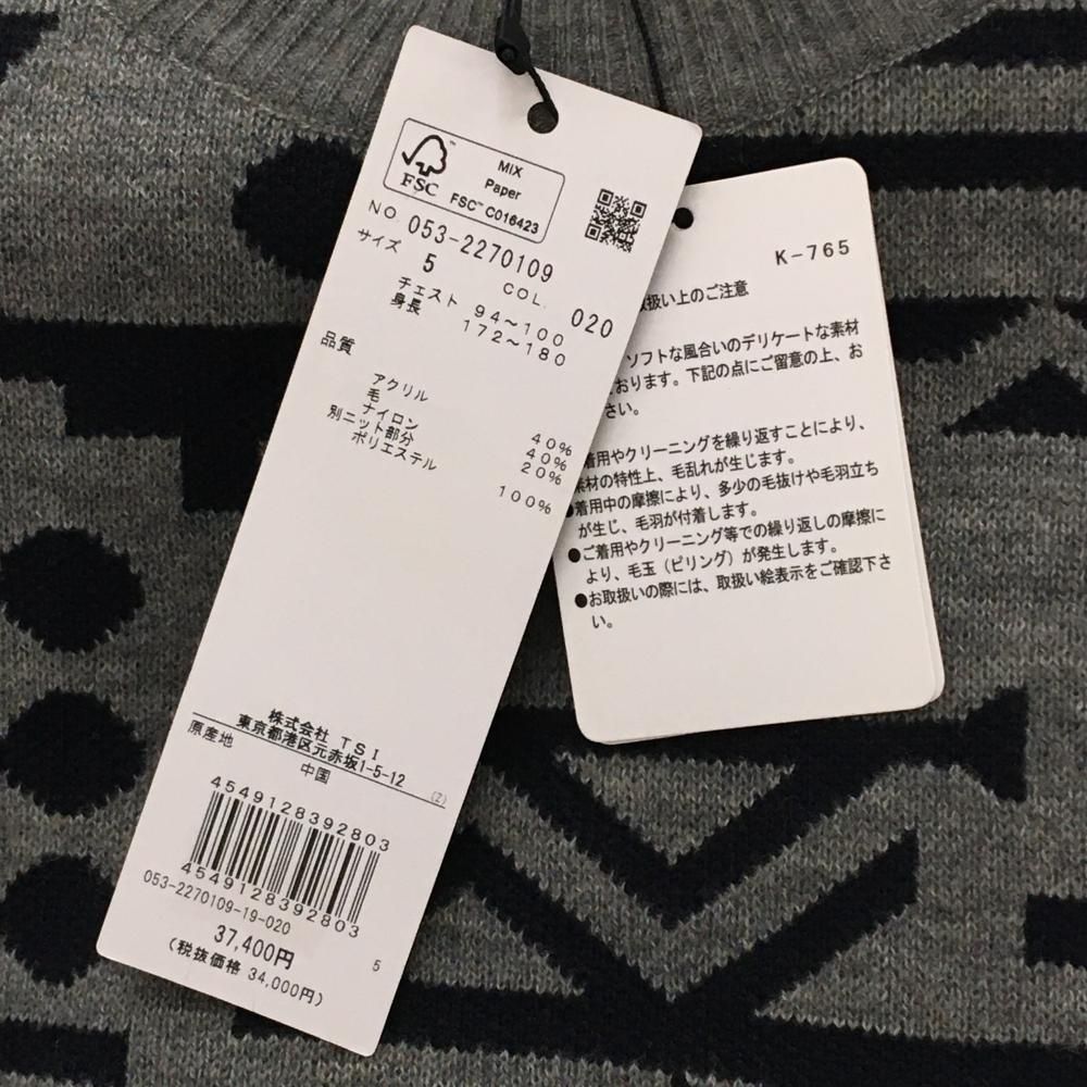 パーリーゲイツ セーター グレー×黒 総柄 ニット メンズ 5 L ゴルフウェア PEARLY GATES