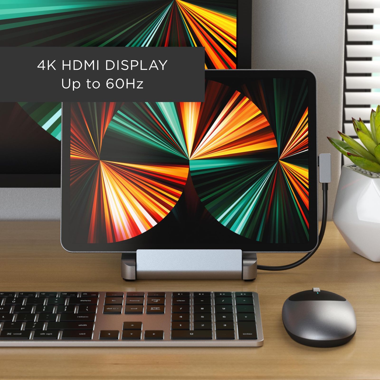 【仕事空間をアップグレード】 タブレットスタンドにUSBハブの機能。デスクでも外出先でも、iPad Pro (2018 以降)またはUSB-Cデバイスを機能的でスッキリした仕事空間に変えます。