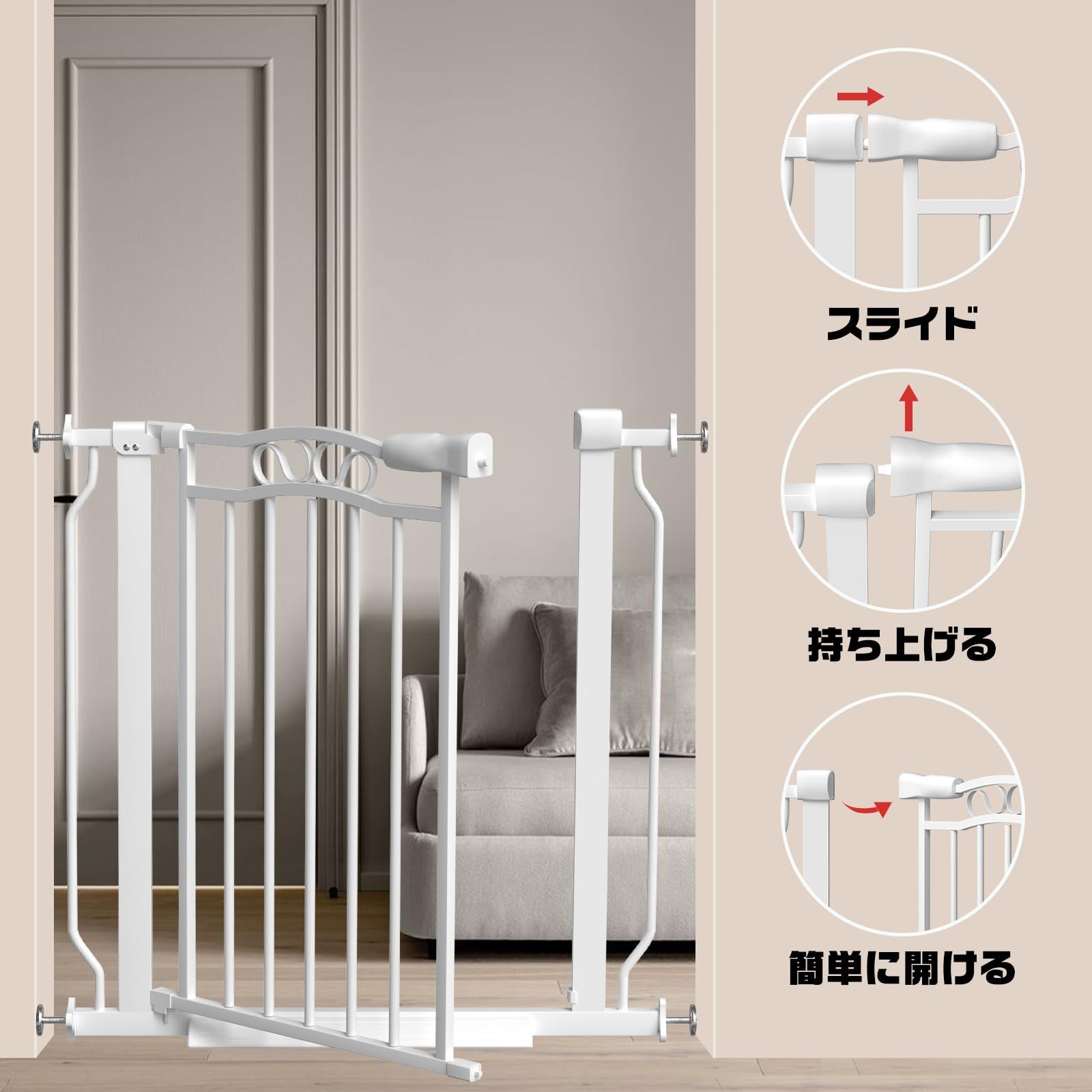 ウィードマップ ベビーゲート 設置幅75-110cm ホワイト ペットゲート バリアフリー ゲート 階段上 犬 自動ロック 突っ張り式 オートクローズ機能 扉開閉式 保護 扉開閉式 赤ちゃん 拡張可能 壁 ベビーガード 柵 高さ78cm
