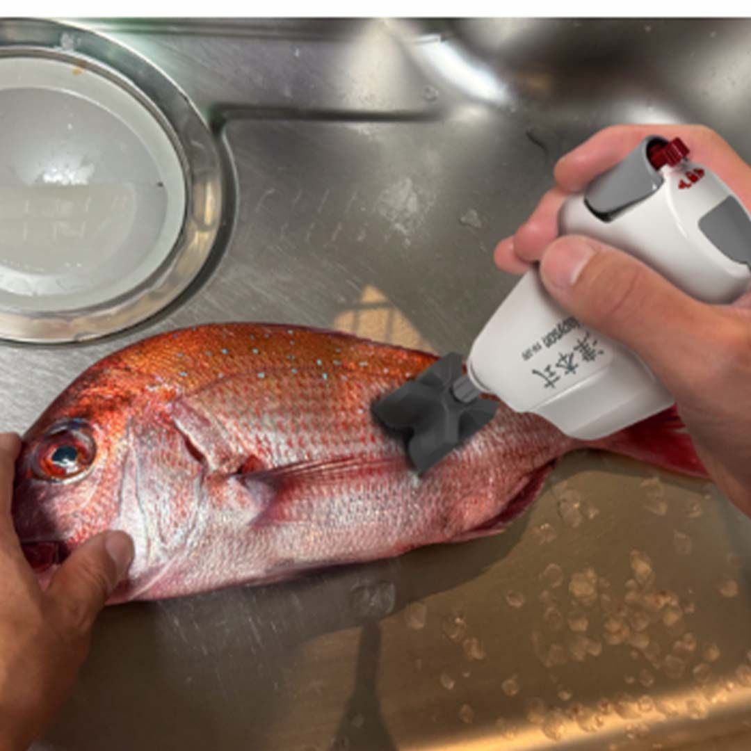 ・毎分約3000回転のパワーで、約40㎝の真鯛1匹のウロコを最短2分程度で除去!