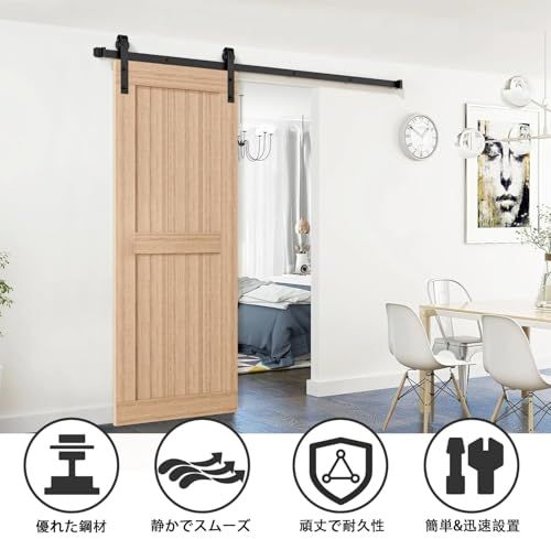 【高い互換性・DIYに最適】 この1.83m吊り引き戸レールセットは、幅87cm以下、厚さ3.54.5cmの室内ドアに最適です。簡単DIY設計で、あなた好みのユニークなお部屋スタイルを簡単に実現!※ご注意:引き戸 diy キットのみ販売、ドアは含まれません。使用前に付属品をご確認ください。